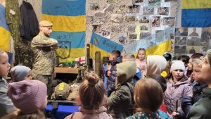В день відзначення Дня захисника та захисниці України та Дня козацтва, до музею пам’яті учасників російсько-української війни завітали маленькі патріоти-добродії Чернівецької гімназії №19. Школярі хвилиною мовчання вшанували пам’ять всіх полеглих ГЕРОЇВ минулих часів та сьогодення. Також мали змогу оглянути воєнні експонати привезені з війни і поспілкуватися із ветераном війни Сергієм. “Легіон” дав можливість всім охочим, а їх як завжди було багато, приміряти військову амуніцію. Розповів дітям про надання першої домедичної допомоги, показав, що обов’язково має бути у аптечці у кожного бійця. Ну і звичайно найцікавішим моментом – це були запитання дітей, а їх було дуже багато. Учні також мали змогу долучилися до плетіння маскувальних сіток.