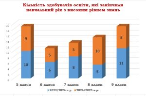 Порівняльна кількість здобувачів освіти які закінчили навчальний рік з високим рівнем знань